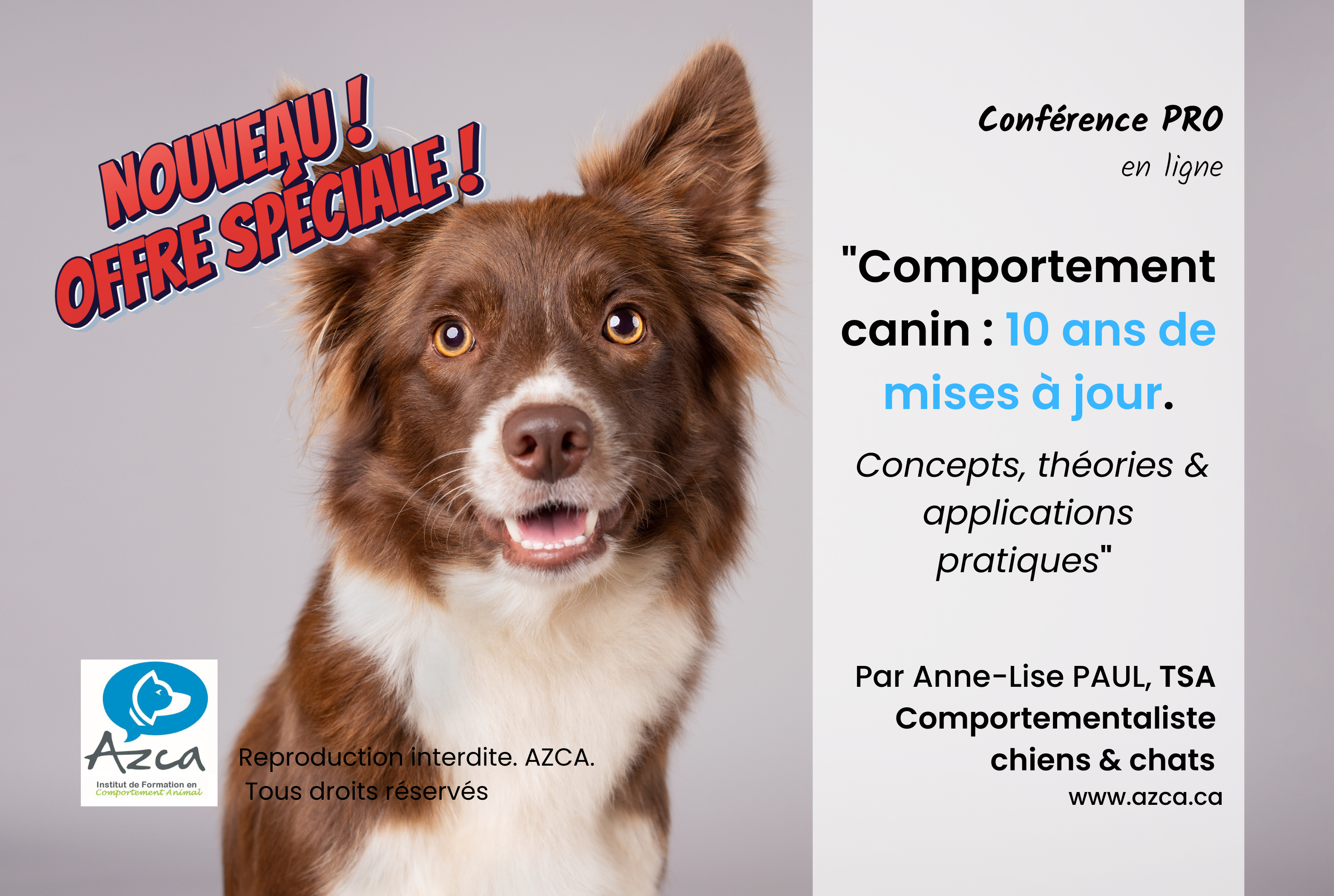 Nous avons réuni trois conférences récentes, toutes inédites, qui offrent une compréhension plus fine et plus approfondie de thématiques clés en comportement animal. Des contenus rigoureux et actuels, 100 % conçus pour les professionnels qui veulent toujours évoluer dans leur pratique.