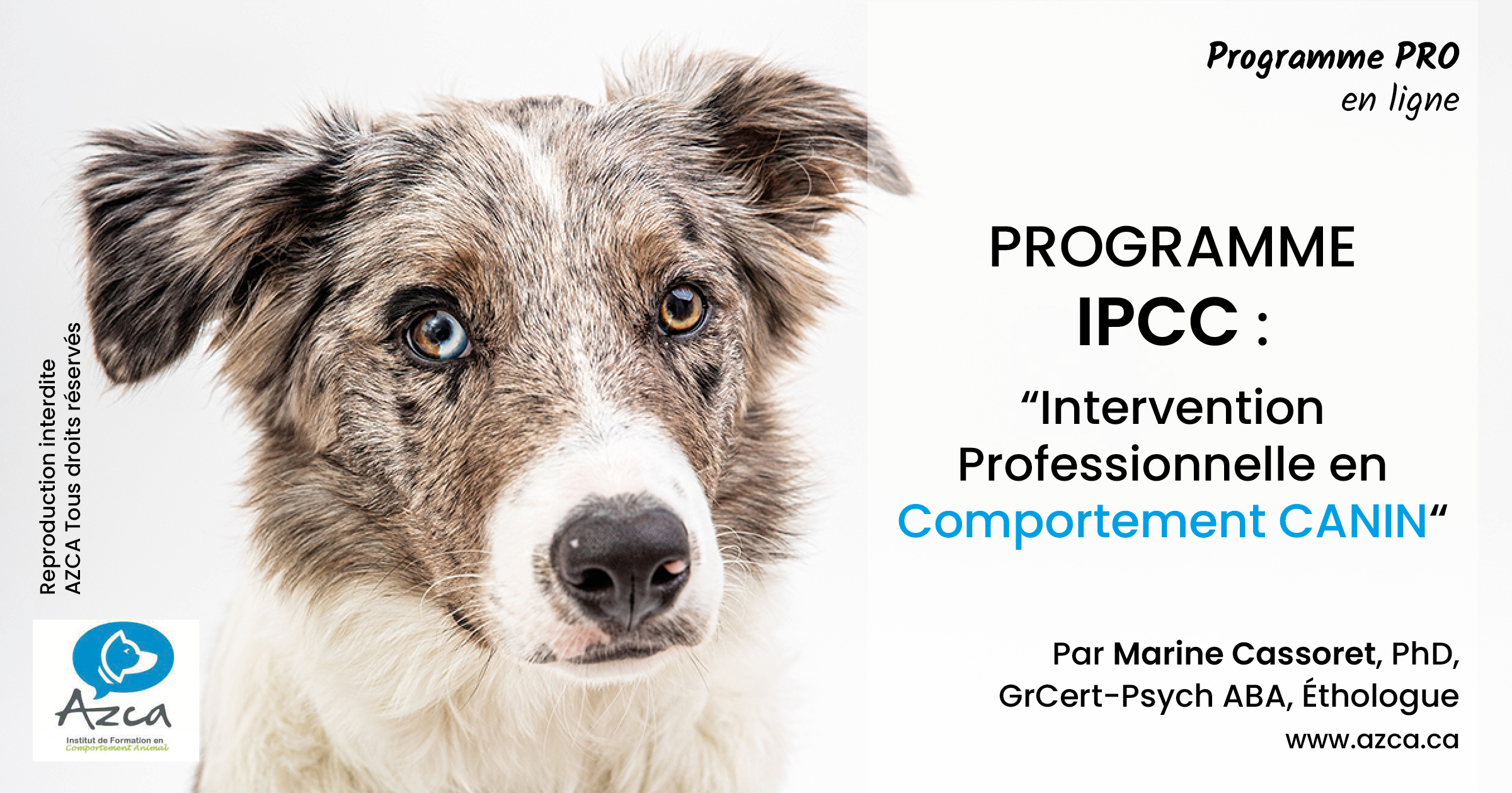 Ce cours est destiné aussi bien à des professionnels du domaine animalier souhaitant une formation avancée en comportement animal, qu'aux étudiants désirant devenir intervenant en comportement canin, via notre programme IPCC dont il est la seconde partie. Il est également ouvert aux étudiants en premier & deuxième cycle universitaire, souhaitant un cours avancé en comportement canin.
