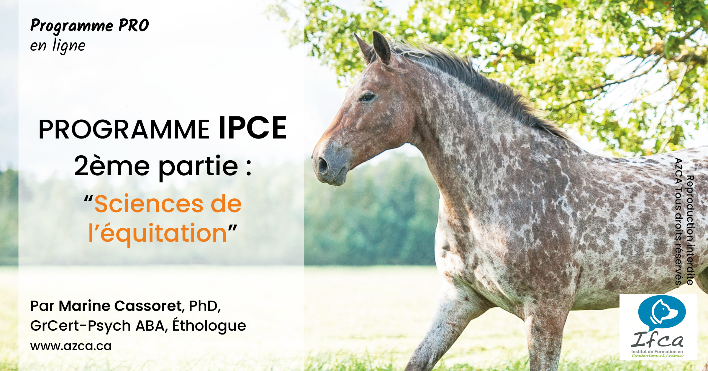 - Cours: Un cours en éthologie équine est nécessaire avant l’inscription.